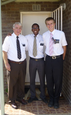 We did our part for the open house. We were leaving Saturday morning, after the game drive, we kind of got side tracked. After deciding we should have lunch, KFC, Elder Gubler thought we should eat on the KFC patio instead of the car. The Taylors and I were pretty surprised because we knew that Elder Gubler was concerned about the 10 hour drive home. While we were eating, a nice young man with an earring in one ear came up to us and asked us where the church building was. He wanted to go to church the next day. After many phone calls (most of them dropped because of the lousy cell service) we were able to get him to the church that Saturday for the open house. He is from Francis Town but is living with his uncle and looking for a job in Kasane. He even helped pass the Sacrament Sunday because he is a priest. Just think, he wouldn't have found the church if we hadn't taken time to eat where we could be seen.